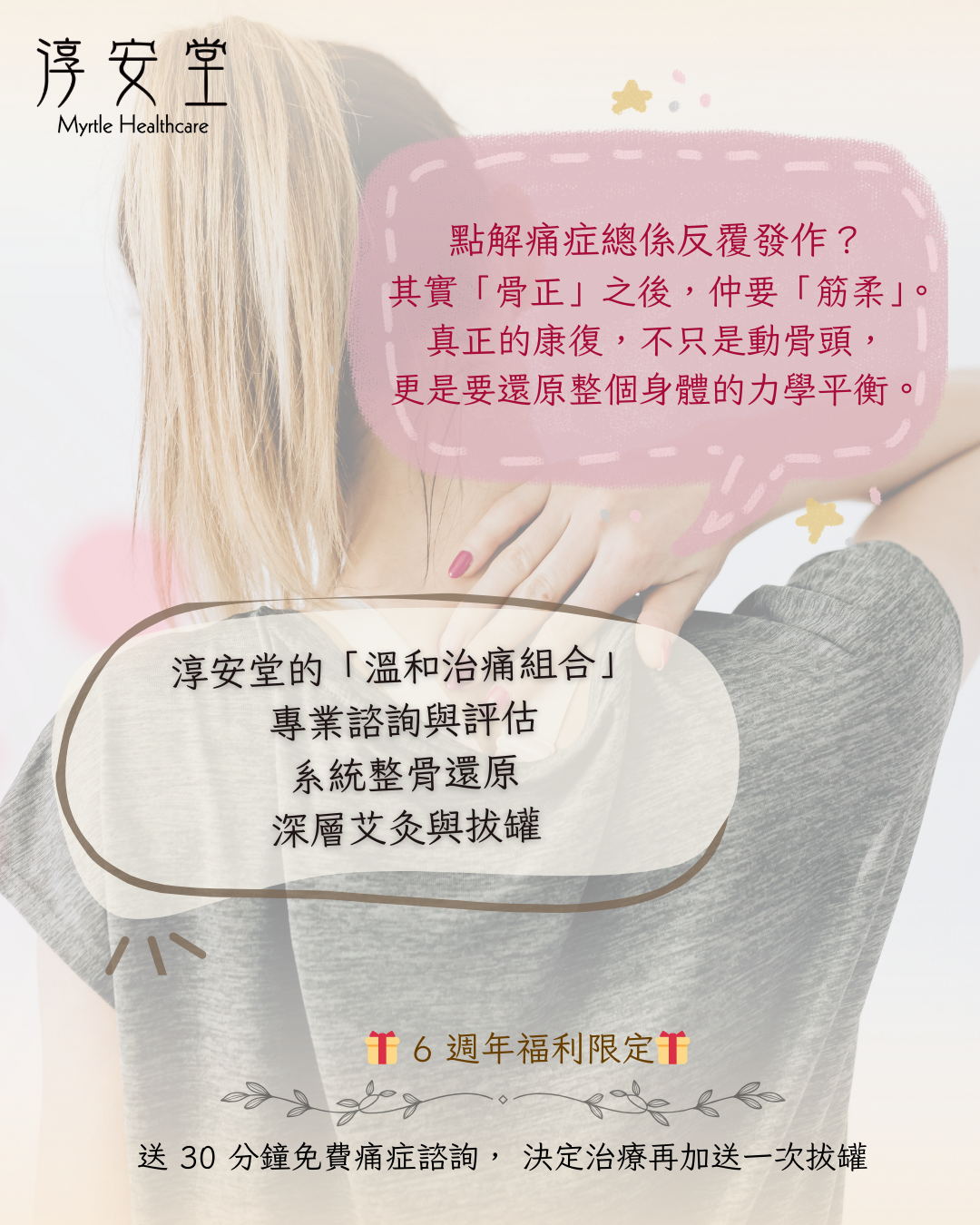 淳安堂 #MyrtleHealthcare #整骨復位 #中醫整骨 #骨科痛症 #痛症諮詢 #艾灸驅寒 #拔罐 #英國生活 #WFH痛症 #脊椎側彎 #6週年優惠