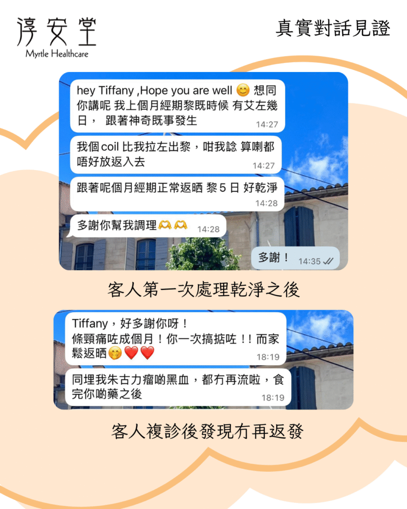 我哋係由註冊中醫師主理,每一位客人都會針對體質做個人化處方,無論係痛症、經期問題,定係子宮肌瘤咁嘅慢性婦科病,都有辦法對症下藥,醫調合一。