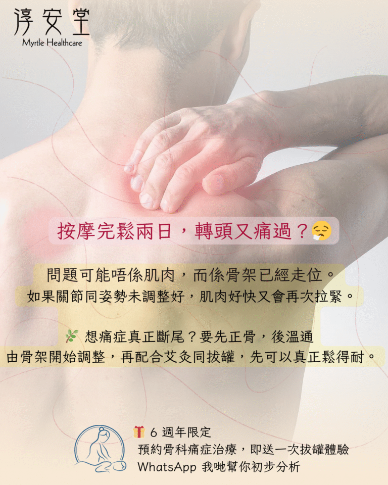中醫調理冷知識6 3 月, 2026【健康分享】點解痛症總係反覆發作?🤔 其實「骨正」之後,仲要「筋柔」。很多人在面對長期肩頸或腰背痛時,第一時… Read More【健康分享】點解痛症總係反覆發作?🤔 其實「骨正」之後,仲要「筋柔」。